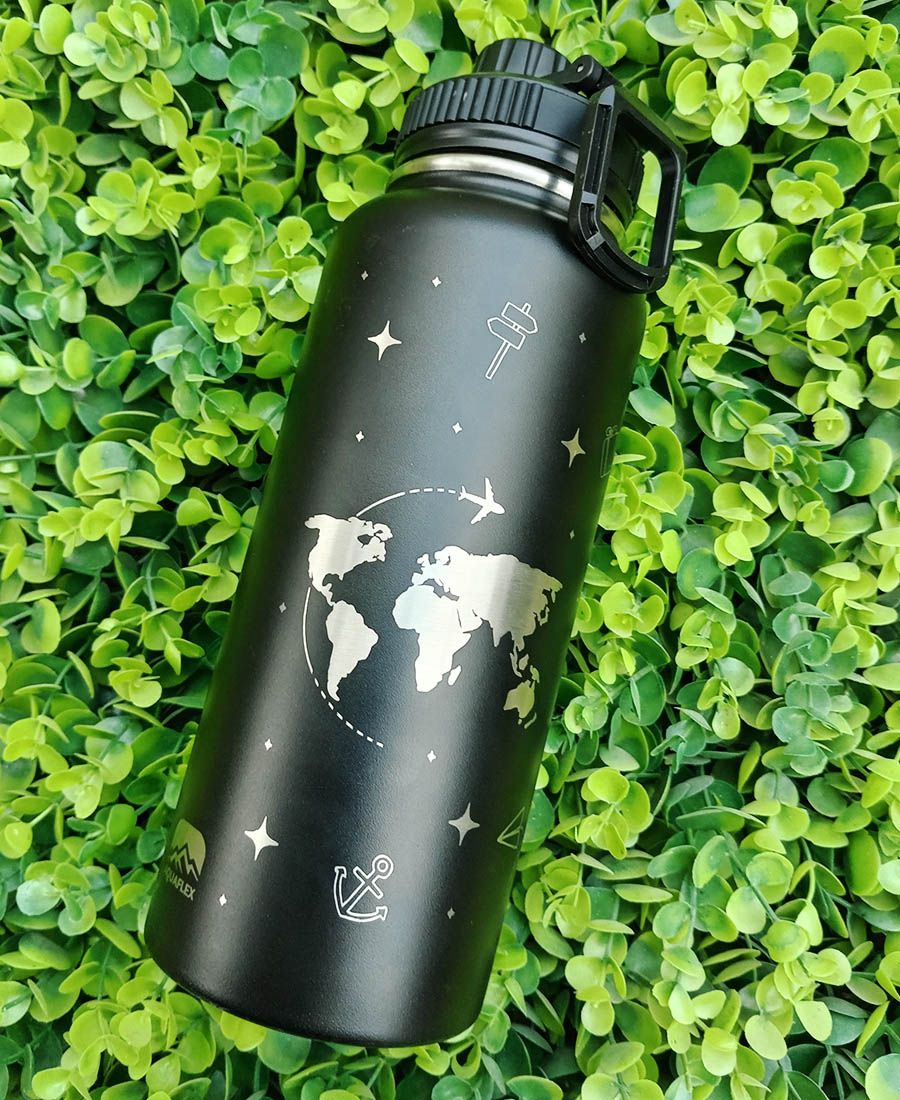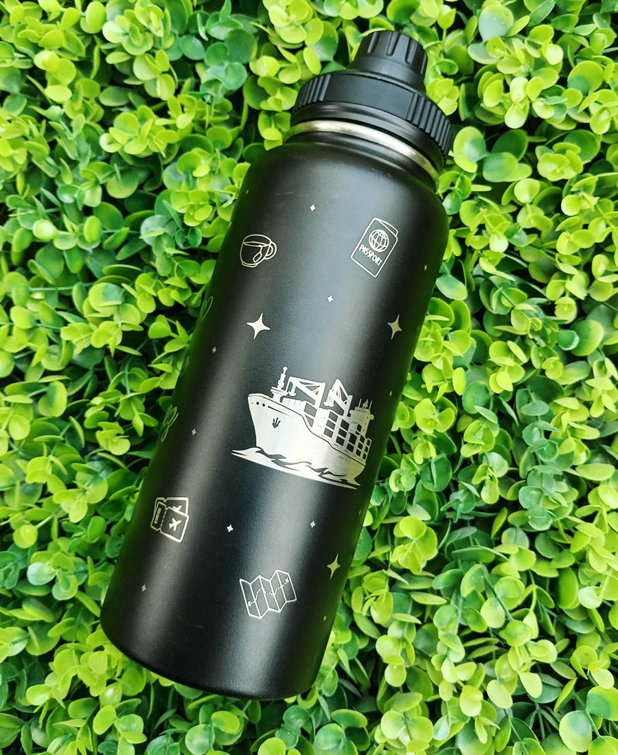 Botella deportiva de acero personalizada con temática de Comercio Internacional, ideal como regalo institucional, obsequio para estudiantes o detalle corporativo en eventos académicos. Fabricada en acero inoxidable de doble pared, mantiene la temperatura por horas. Diseño profesional y duradero, perfecto para promover carreras, empresas o programas de comercio exterior en Honduras.