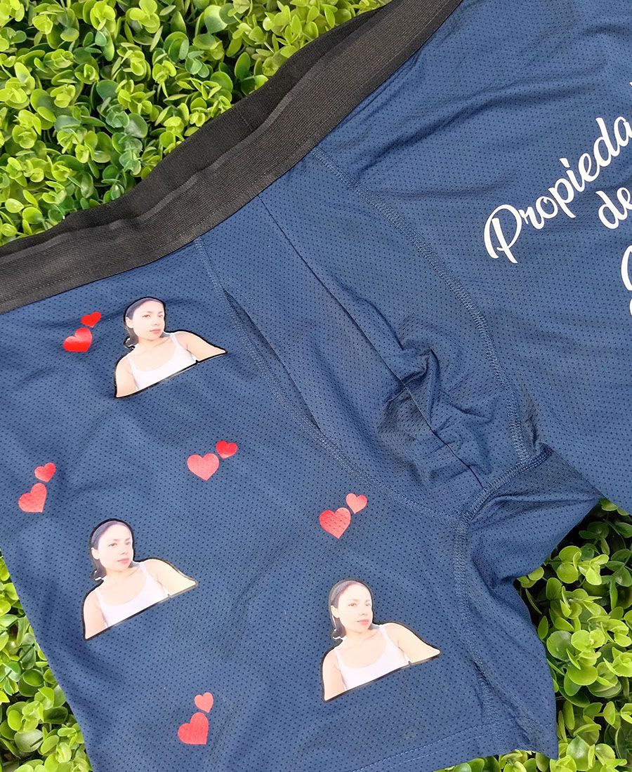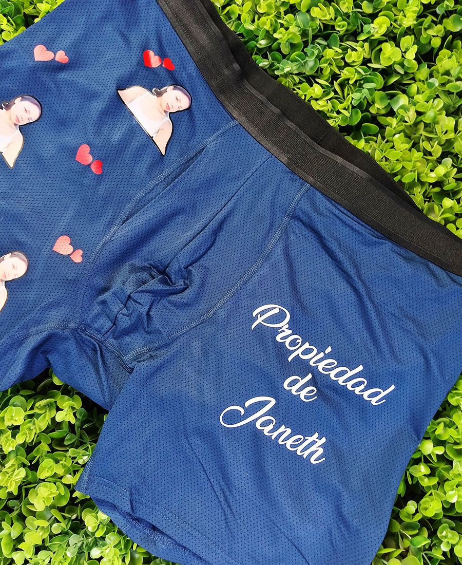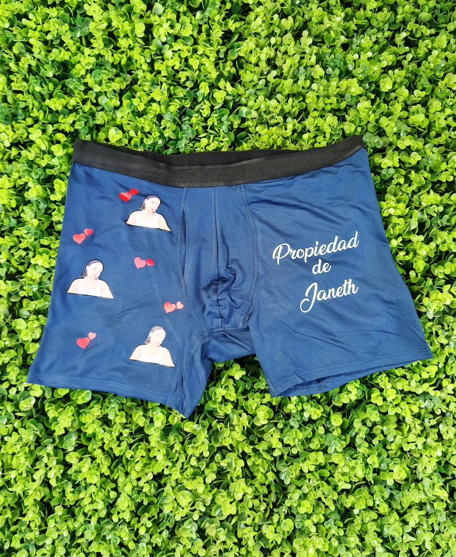 Calzoncillos boxers con impresión de foto y mensaje personalizado. Perfectos para regalos creativos. Diseño resistente, cómodo y totalmente único.