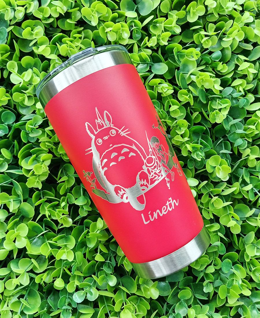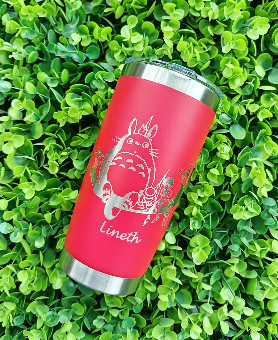 Vaso de acero inoxidable Totoro con grabado láser en Comayagua. Detalle único, resistente y personalizado para fans.